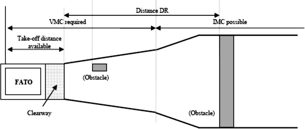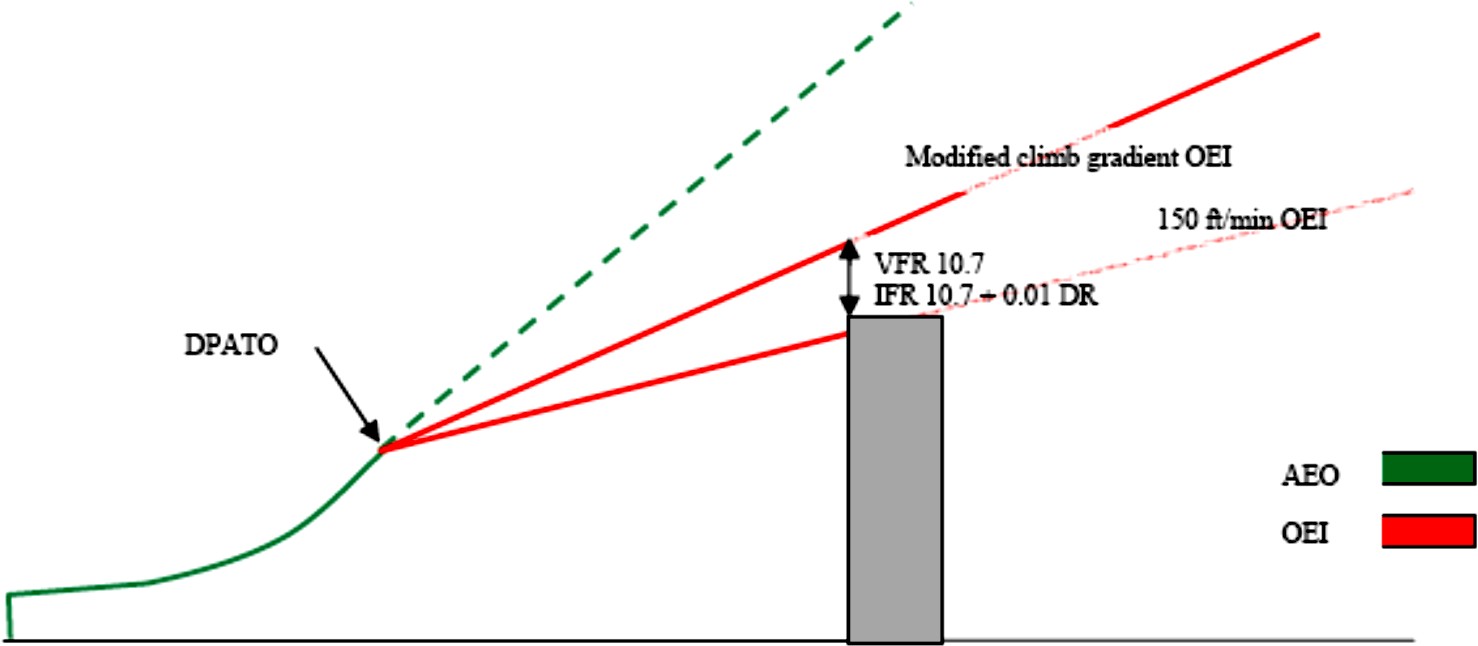 As can also be seen from Figure 4, flight must be conducted in VFR until DPATO has been achieved (and deduced that if an engine failure occurs before DPATO, entry into IFR is not permitted (as the OEI climb gradient will not have been established)).