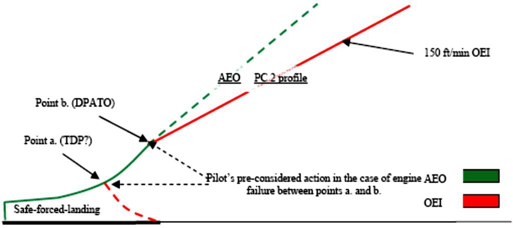 engine failure before DPATO: before the DPATO, failure of the critical engine may cause the helicopter to force land; therefore, a safe forced landing should be possible (this is analogous to the requirement for a reject in performance class 1, but where some damage to the helicopter can be tolerated.)