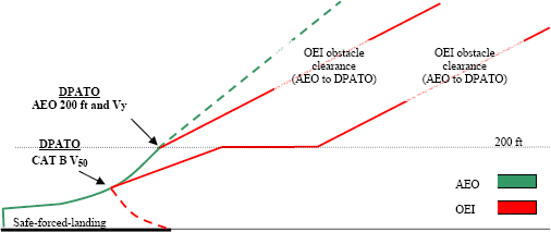 ICAO Annex 6 does not give guidance on how DPATO should be calculated nor does it require that distances be established for the take-off. However, it does require that, up to DPATO AEO, and from DPATO OEI, obstacle clearance is established (see Figure 3 and Figure 4 which are simplified versions of the diagrams contained in Annex 6 Part III, Attachment A).