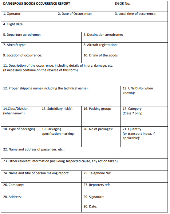 (f) The following dangerous goods reporting form should be used, but other forms, including electronic transfer of data, may be used provided that at least the minimum information of this AMC is supplied: